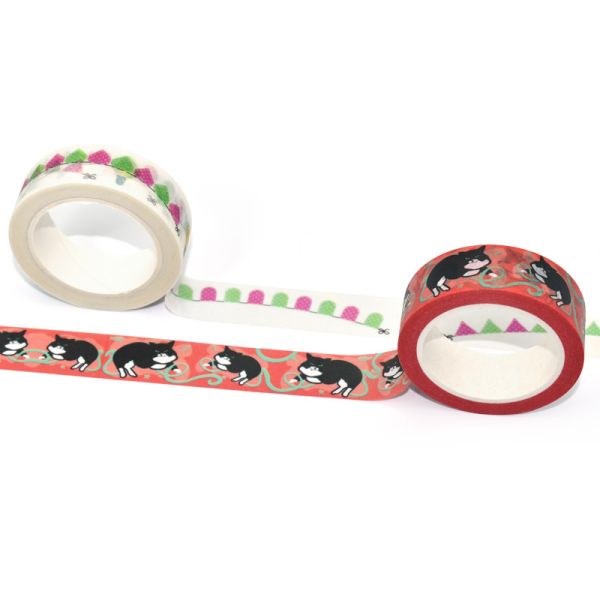 | Profiled washi tape | 15mm*10m | CMYK+Die cut | 1 roll/wrinkle pack+2 round stickers | Available |