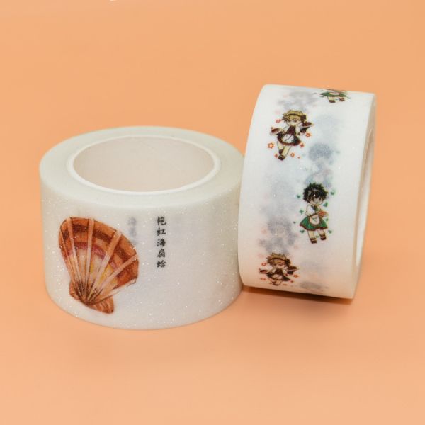 | Glitter powder washi tape | 15mm*10m | CMYK+Glitter | 1 roll/shrink+2 round stickers | Available |