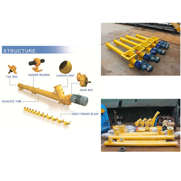 Working principle of High Capacity Small Steel Tubular Screw Conveyor is rotating spiral blade for screw conveyor conveying the material goes on, the material is not spinning force with the blades of screw conveyor is its own weight and screw conveyor casing material for material friction screw conveyor on the axis of rotation of the welding of spiral blade, blade surface type according to the conveying material have different entity type belt type surface type, such as type of screw conveyor screw axis of vane surface terminal at the direction of material movement have thrust bearings to the material to spiral axial reaction force, when the captain a long, should add hanging bearing in the middle.