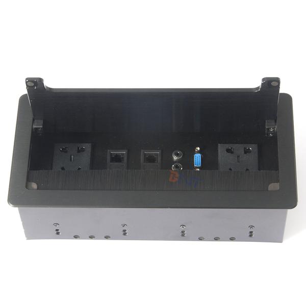 The brush cover desktop socket is designed as a desktop fixed socket with a brush cover flap. The drawing cover of desktop socket adopts aluminum alloy surface treatment, which can be opened and turned over. The aluminum alloy plate of the brush cover desktop socket is 5mm. All sockets can be easily used through the brush cover without opening the brush cover.