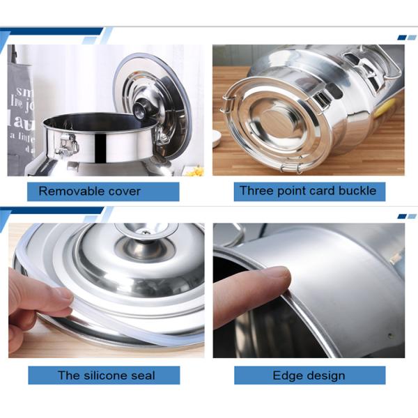 A:Of course, our bucket is made of food-grade stainless steel, which is highly corrosion-resistant. It can not only store solids such as grain, but also liquids such as wine and oil. It has strong sealing, so there is no need to worry about leakage during transportation