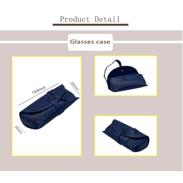 A025 Blue Leather Ladies Sun Glasses Bag Cheap Belt Closure Eyeglasses Case Sunglasses Pouch Set