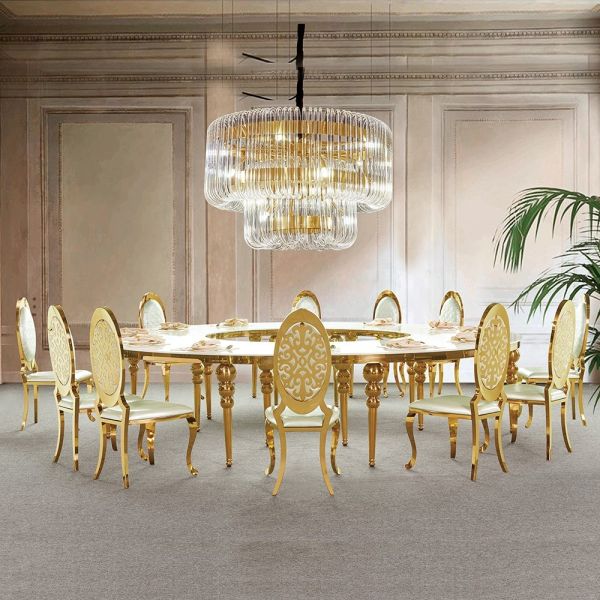 Half Marble Round C Shaped Golden Wedding Table Furniture Products