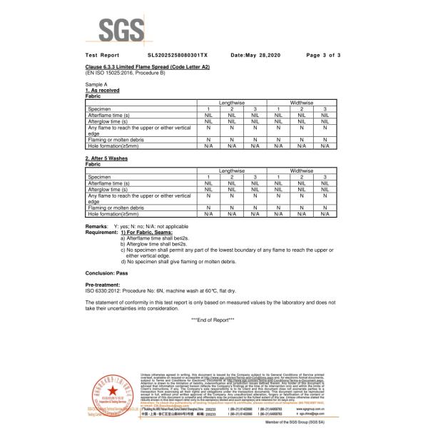 After testing by third party test institute, our fabrics are proved to comply with the american/European standards, such as EN11612, EN11611, nfpa2112 etc.