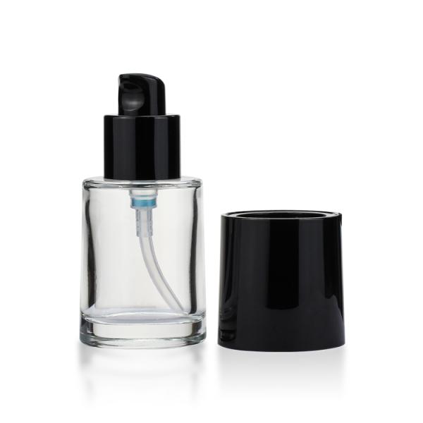 Fundation bottles are made of high-quality glass,round shape clear liquid pump custom.Fine workmanship, smooth and clear surface.