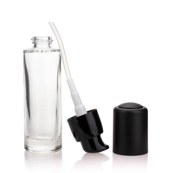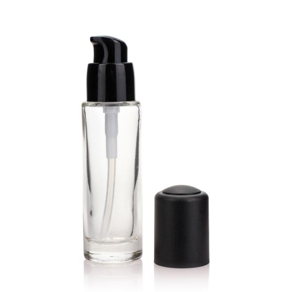 30ml Clear Round Shape Glass Liquid Foundation Bottle With Pump And Cap