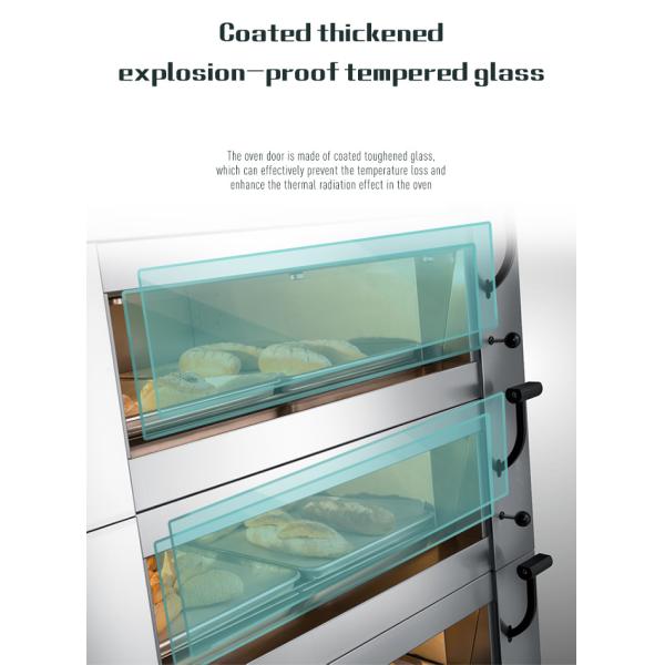 The 3 deck 9 trays gas oven,which is used the digital tube intelligent control system, the operation is simple, and the actual temperature and setting temperature in the oven are displayed at the same time.PID proportional operation control heating, combustion pipe made of seamless pipe, double gas pressure stabillzer valve, unique gas mixer, soft and stable flame ignition or combustion is not good, the burner will immediately close the pressure stabilizer valve with real-time alarm sound. With open door flame out protection, automatic ignition after dosing, safety and energy saving.Oven door with stainless steel and insulation layer, visual window suitable to observe all kinds of products baking with built-in or plug-in steam system, can quickly produce a certain pressure of saturated steam: and the product quality consistent baking products to obtain uniform steam and make the product quality consistent.
