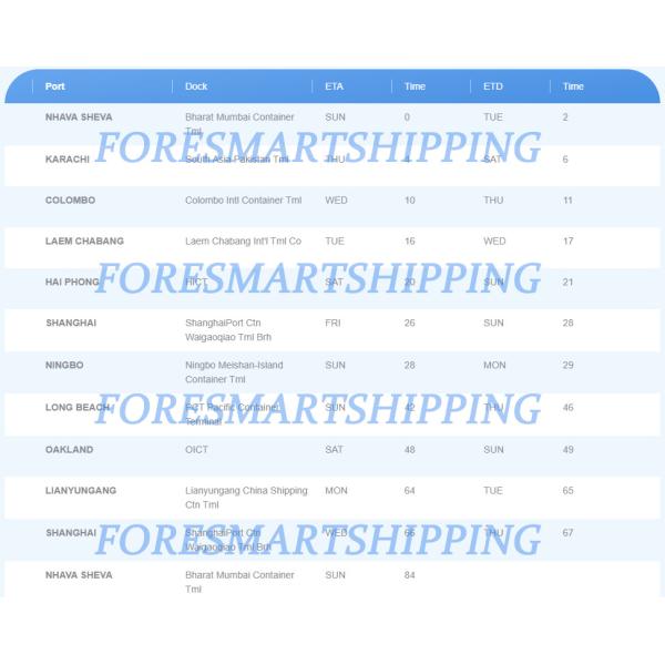 | Foresmart LCL sea freight shipping to USA | Type | origin | destination | main carrier | TT (transit time) | Freight Cost |