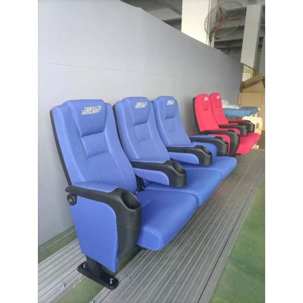 This type theater chairs features as below:1. Armchair with big plastic cup holder; 2. Their rock mechainism is very stronger, And It has passed Russia's market test. 3.Their seat back adpat full foam, so the seat feeling is very comfortable. Sure, It has many other good option; It could embroidery logo or number in the headrest; The amrest with seat number, The back with palctic cover or fabric, It depen on your option.