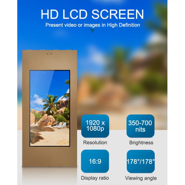 The wall-mounted/hanging outdoor digital signage screen can be potrait or landscape orientation installing. Due to space constraints, some customers may choose to install the screen vertically, this way should more suitable for some product-specific requirements.Flexible to adapt to different needs.