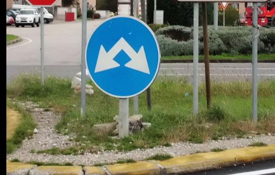The "Divided Highway" sign means that the two lanes of opposing traffic on the highway ahead are divided by some type of physical barrier or median such as a guardrail, concrete barrier, or a strip of land. ... Divided highway signs are diamond-shaped with a yellow background and black symbols.