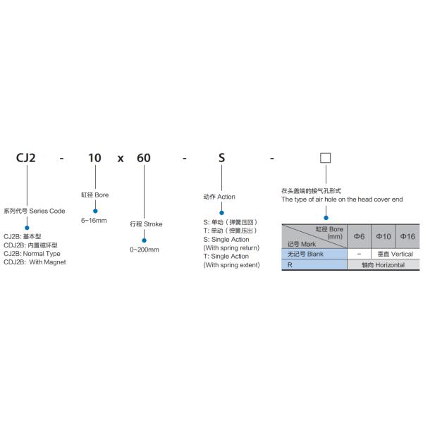Ordering Code of CJ2 Series Mini Pneumatic Cylinder: