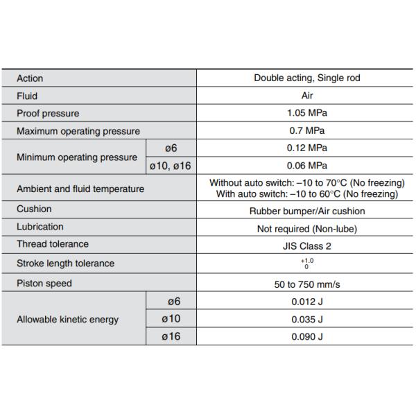 Specifications of CJ2 Series Mini Pneumatic Cylinder:
