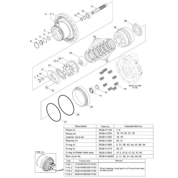 1 Hydraulic parts: hydraulic pump, main valve, hydraulic cylinder, final drive, travel motor, swing machinery, swing motor etc.