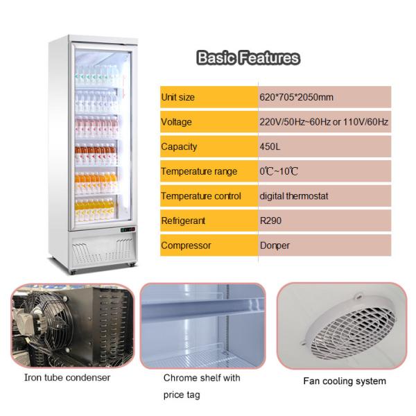 450L supermarket upright display fridge glass door refrigerator beverage bottle cooler