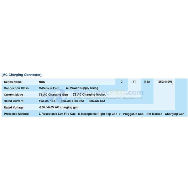 NDQC-7Z(16A-250/440V)-L AC 16A left filp cap vehicle end charging