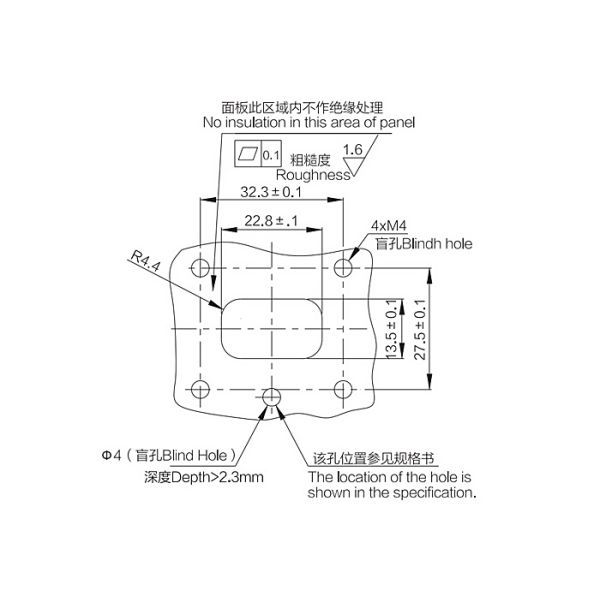 C1127-EV-P(2+2) RA~B 2pin Receptacle Interface Mounting Design