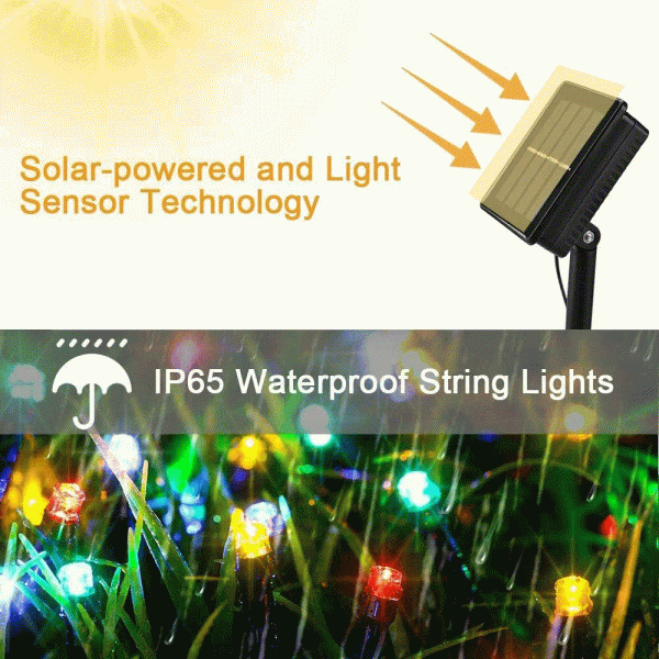 The solar flash string light is equipped with 200 LED bulbs with a total length of 72 feet and 8 modes, including wave, combination, fade, fire file, chase, flash, slow fade, and steady on. IP65 certified solar lights can resist water, don't worry about using them in heavy rain and snow;