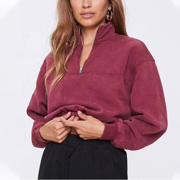 Custom embroidery logo fashion plain color pullover hoodie sweater for women