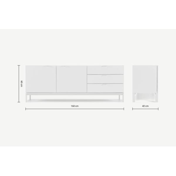The on-trend organiser's dream. The plinth base and metal handles are distinctly minimal, plus the mix of drawer sizes and central cupboard keeps everything in order. Messy cables? We'll take care of those.