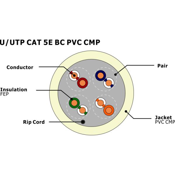 U/UTP CAT 5e BC CMP Solid 0.50mm Copper Conductor Indoor Plenum PVC Jacket Cat5e Network Cable CPR Certified NO 7112105