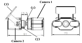1. Adjust the position of (1) to change the angle of inner-forwarding camera 1.
