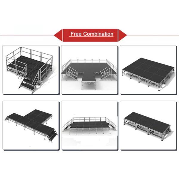 • Modular design (Aluminum stage platforms come in 1m*1m sections) allows the aluminum stage to be expanded or configured as needed.
