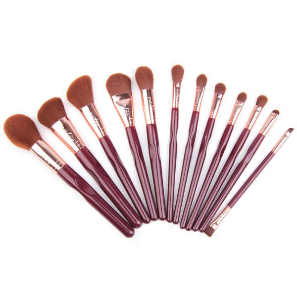 12 Piece Three Concave Wooden Handle Synthetic Fiber Makeup Brushes
