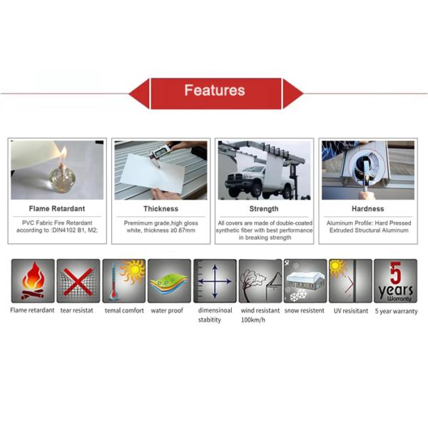 | Features | Water Proof, UV Resistance, Fire Retardant(DIN4102,B1,M2) | |