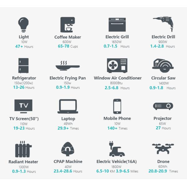 regrigerator, grill, air conditioner, TV, laptop, electric vehicle,