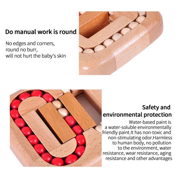 Puzzling toy Simple playing rule, puzzling restoring process. You have to restore the place of the red and white ball by moving the long square in the middle. Brain exercise Combines puzzles and Cube. Only provides two colors, helps to kill time and improve children’s thinking, eye-hand coordination ability. High-quality wood material Made of natural beech wood, appears natural wood color, sturdy, non-toxic and durable. With smooth surface and round edges, will not hurt children’s hands. Safe paint The red and white balls are painted with safe and eco-friendly material, non-smell and tasteless, and not easy to fade. Small and lightweight With small size,easy to hold and play for children, convenient for carrying around, suitable for killing time and releasing stress everywhere.