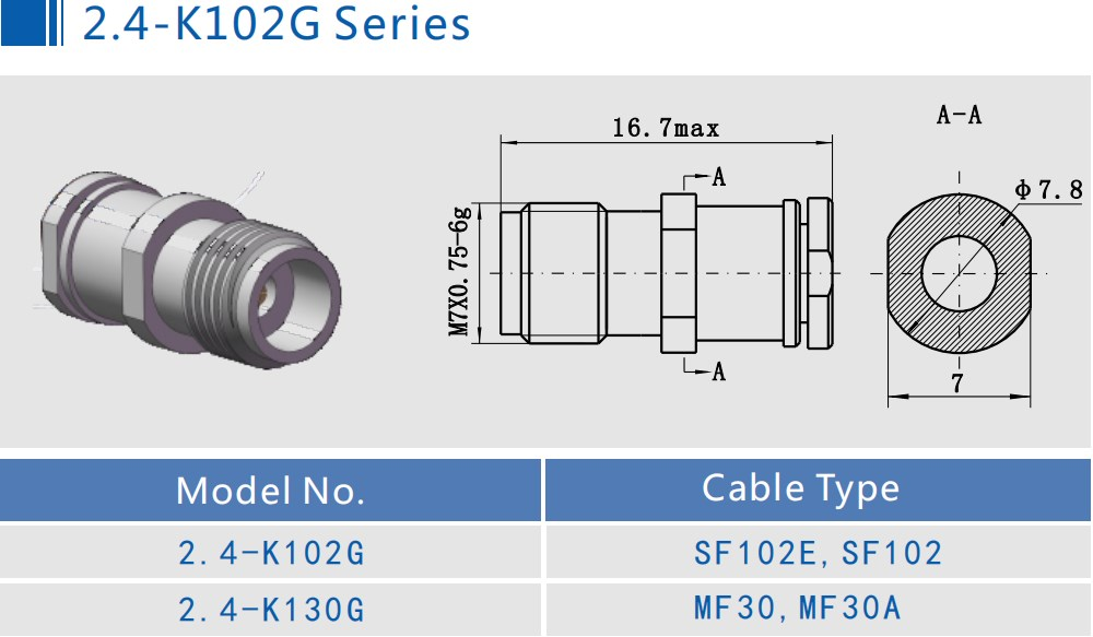 The high precision 50 ohm coaxial 2.4mm connectors for general-purpose RF and microwave use. These high performance