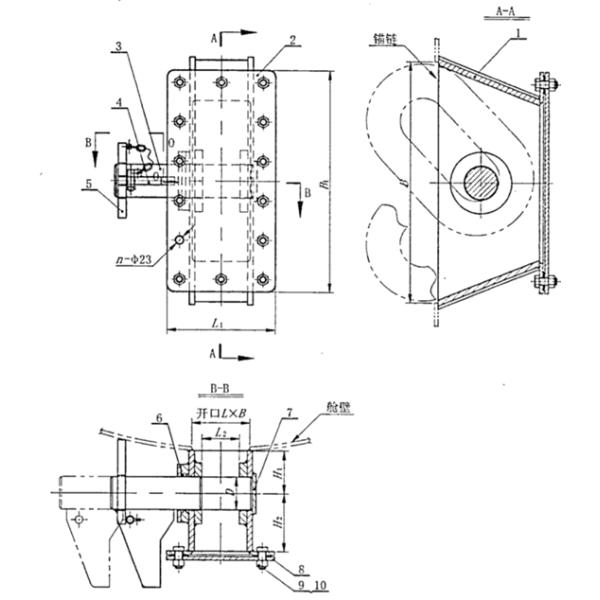 Drawing of CB/T 3143 Watertight Dog Type Cable Clench Ship Mooring Equipment