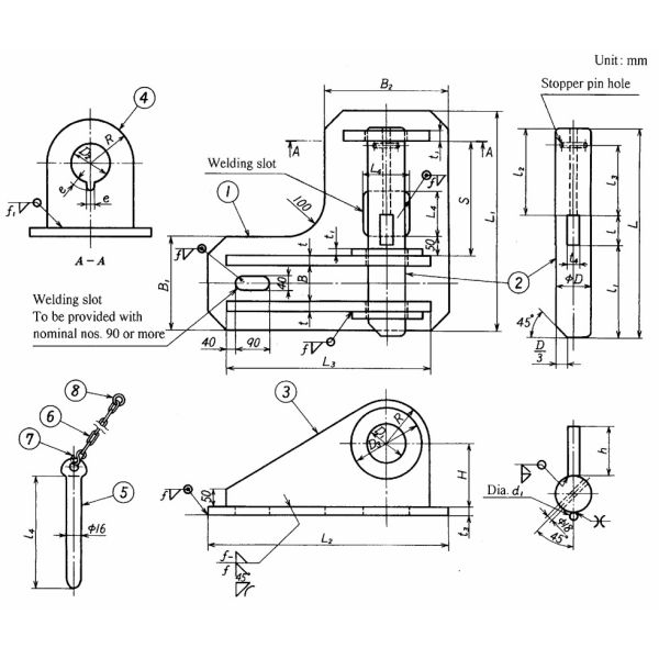 Drawing of JIS F 2029 Towing Mooring Brackets Ship Towing Equipment