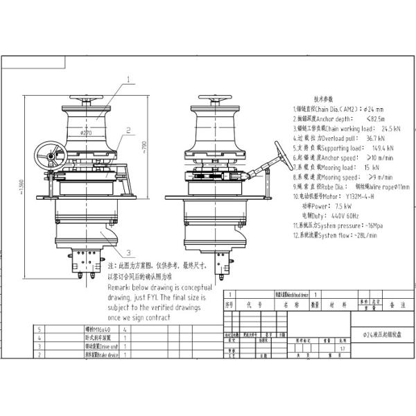 Drawing of Electric Hydraulic Vertical Anchor Windlass Mooring Capstan Ship Deck Equipment