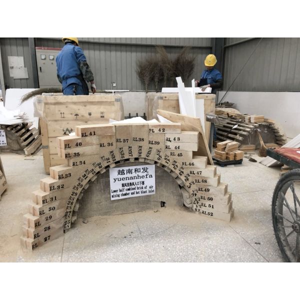 Our high alumina bricks are manufactured strictly according to ISO9001 with high quality GL-70 material for rotary kiln which brings advantages of bulk & density more than 3g/cm3, water absorption less than 5%, higher sintering temperature, less Na2O and K2O, etc. The addition of moderate mullite strengthening matrix and the adoption of high temperature bulk effect of some natural minerals realize high softening temperature with load, high temperature bending strength and low thermal expansivity, etc.