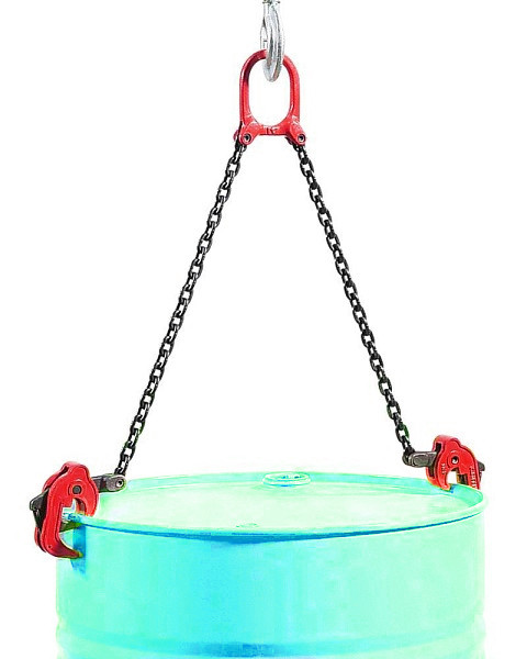 This type of Grade 80 two-leg chain slings is fitted with Master Link Assembly and Drum Lifters to help move and transfer product from liquid storage drums.