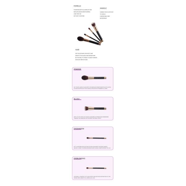 1. Features 4pcs plastic handle brushes to cover any makeup application you can think of.