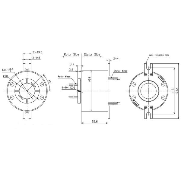 Inner Bore 38.1mm Industrial Slip Ring K Type Thermocouple Slip Ring