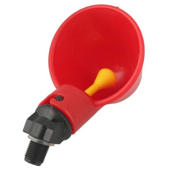 【Automatic Supply of Fresh Water】There is a yellow trigger on the cup that can attract chicken to peck it. When chicken pecks yellow trigger, the valve will automatically release water into red plastic cup to provide water for them.The drinking cup will not release water before chicken pecks yellow trigger.No leak, can keep your henhouse dry.
