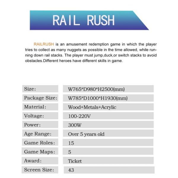 Coin Operated Rail Rush Lottery Indoor Amusement Ticket Redemption Game Machine