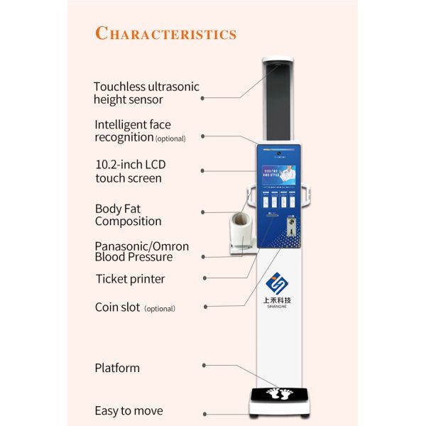 The SH-V10 is ideal for clinicians and physiotherapists - and with an optional coin box and Intelligent Face Recognition, pharmacies and health centres can earn a revenue from this multi-functional medical column scale.