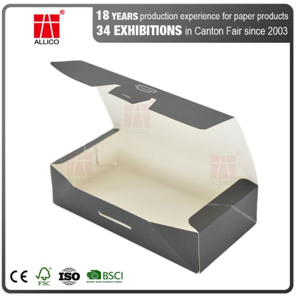 Custom a disposable paper box with your brands for your food packaging. Low weight and folded structure make delivery cost most effective when quantity goes large. Also, for food packaging, customers can do OEM and wholesale. We got FDA certificates for this snack box, that consumers can eat safely.