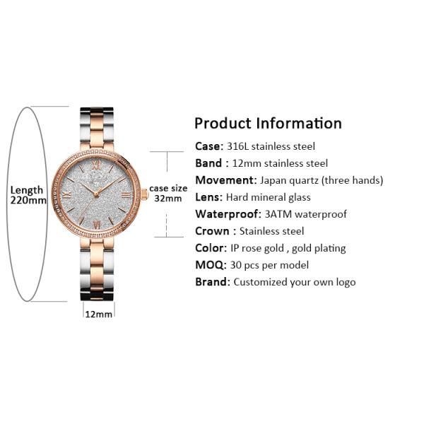 | Case | Material | Round zinc alloy case | Type | Womens Fashion Watch |