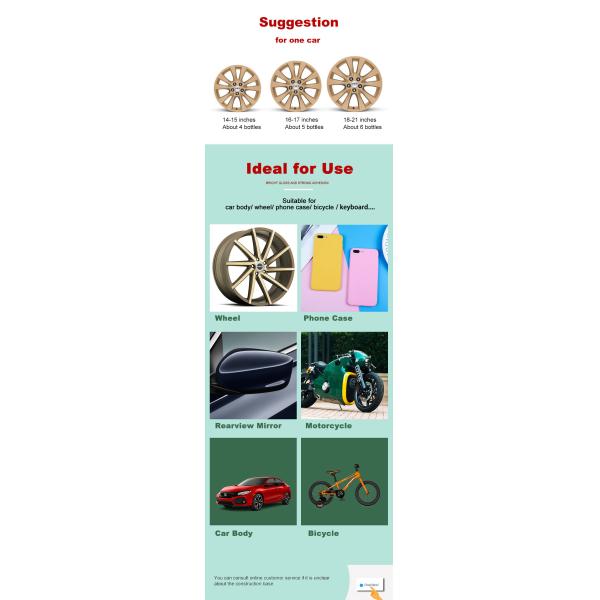 3.Car Spray Paint is widely used in advertising industry, surface-treated wood, metal, ABS plastic, glass and automotive, motorcycle surface decoration and protection.