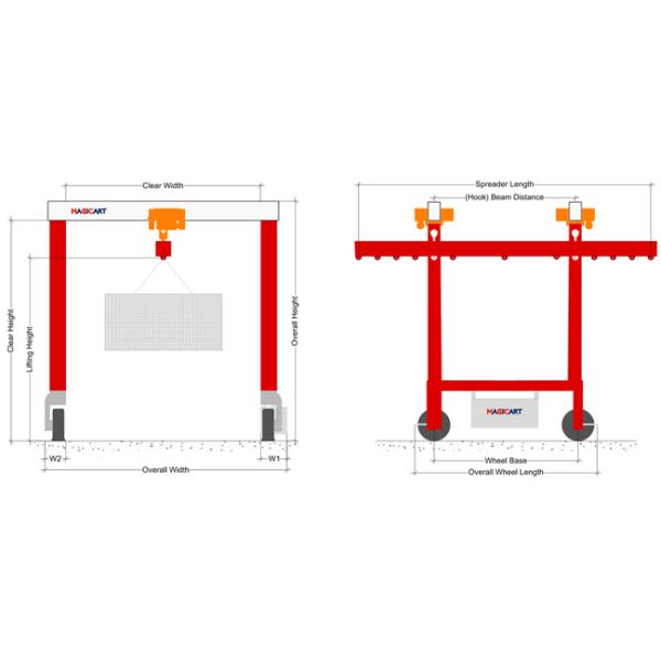 This BS model mobile gantry crane is specially designed for handling large size and longitudinal material, with a beam spreader which can lift one object 4 times longer than crane length and different blocks is also workable to be lifted under spreader. Magicart offers BS model from 10tons to 300tons currently with dimension customized design.