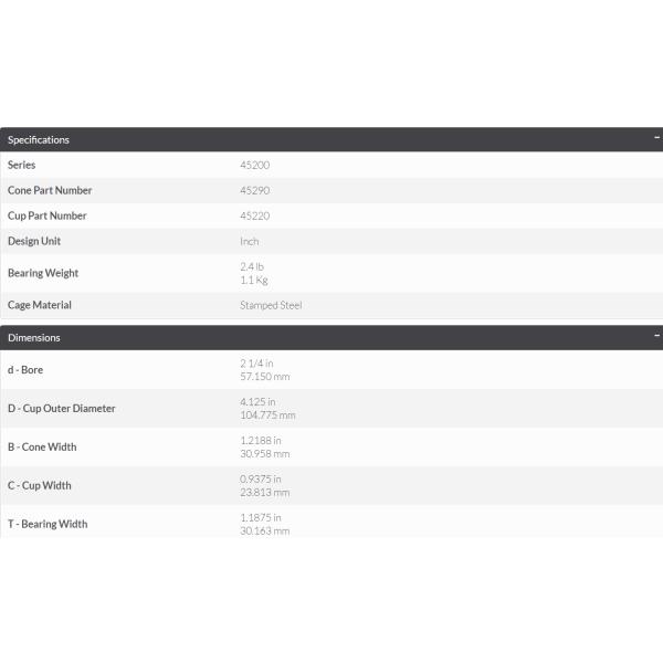 Part Number 45290 - 45220, Tapered Roller Bearings - TS (Tapered