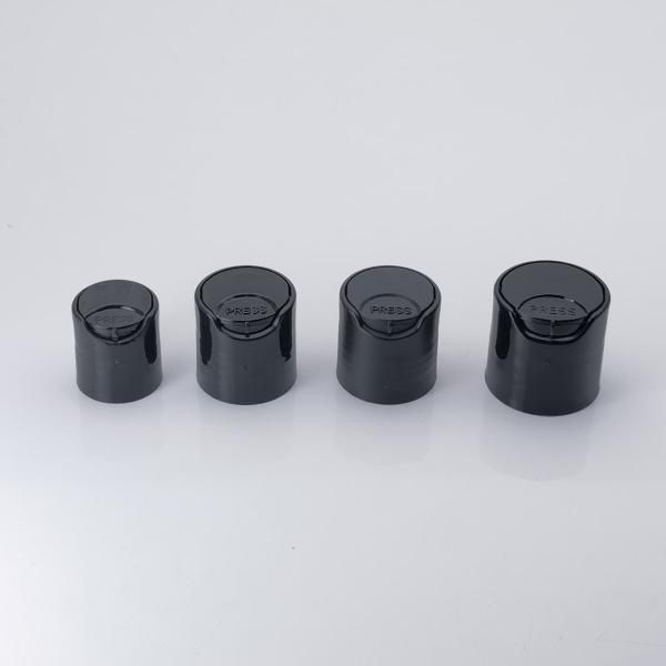 This is a plastic disc top cap, available in 20mm, 24mm, 28mm. The disc top cap has a smooth surface or a frosted surface. The feature of the disc top cap is that the bottle cap has an on-off valve. It can prevent the liquid from leaking out when closed. When opening, you need to press the valve down to pour out the liquid. It can facilitate the transportation of the product.