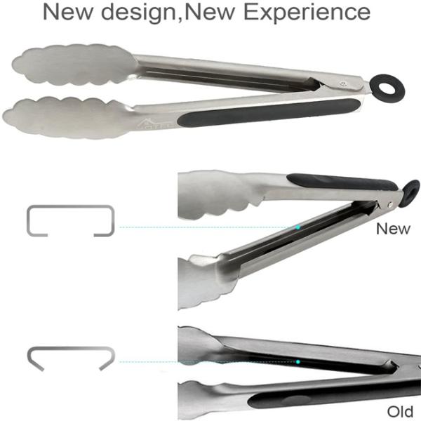 anti-corrosion, light weight, easy to handle, like new forever. This tongs for cooking comes with a set of 2, standard 9" serving tongs