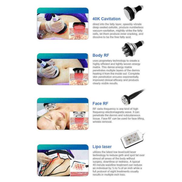 Strong sound wave explosion fat head with collective strong sound wave head, strong sound wave of 40KHz may be emitted to the human body for impacting fat cells fiercely and causing friction motion between fat cells. This may cause effective consumption of calories and moisture in fat cells and reduce the size of fat cells. what’s more, sound wave vibration may cause fierce impact of fat cells to make them be exploded instantaneously, reduce the amount of fat cells and thereby achieve the effects of removing fat.